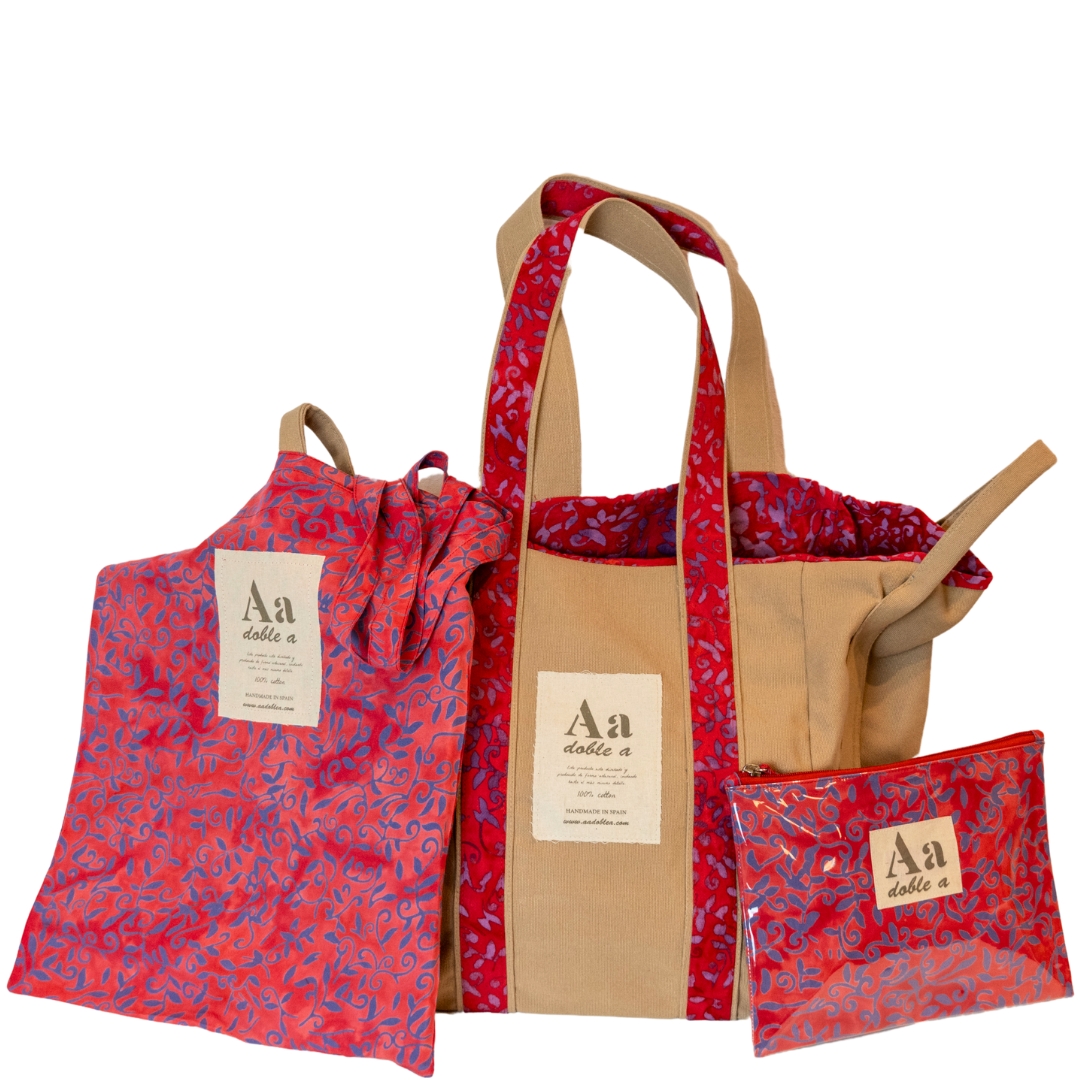Bolso de playa reversible de algodón 100% de producción ecológica.